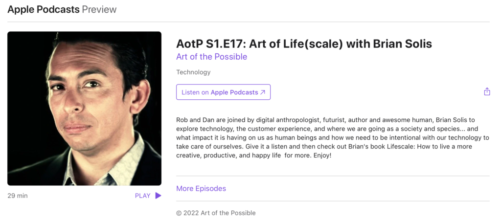 Alors que la Grande Démission nous ouvre les yeux sur l’importance d’être valorisé et de trouver de la valeur dans notre travail, Brian Solis LifeSCALE est un livre essentiel pour quiconque entreprend un mouvement. Écoutez Brian sur “L’art du possible” avec Dan Morrison et Rob Page tout décomposer. Podcast Apple En savoir plus sur LifeSCALE […]
