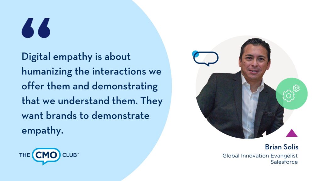 Anthropologue et futurologue numérique de renommée mondiale Brian Solis est Évangéliste mondial de l’innovation de Salesforce. Récemment, il a dirigé un Table ronde virtuelle du CMO Club sur la façon dont l’hyper-accélération de la pandémie vers le numérique a considérablement changé l’opportunité d’améliorer les relations avec les clients. Cela commence par recalibrer notre perspective et voir le monde à travers leurs expériences. Dans un monde axé sur le numérique, nous rencontrons nos clients là où ils se trouvent et nous nous engageons avec eux selon leurs conditions, de la manière qu’ils attendent. La valeur qu’ils ressentent à chaque point de contact devient l’expérience du client.
