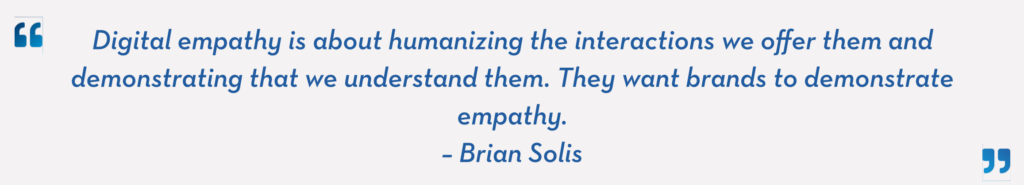 L’empathie numérique consiste à humaniser les interactions que nous leur proposons et à démontrer que nous les comprenons. Ils veulent que les marques fassent preuve d’empathie.